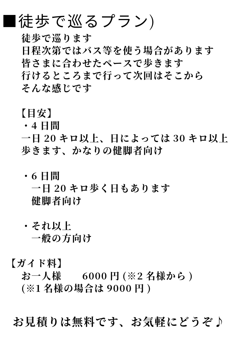 一巡するのに約100kmで全て歩いた場合、一般の方で6日